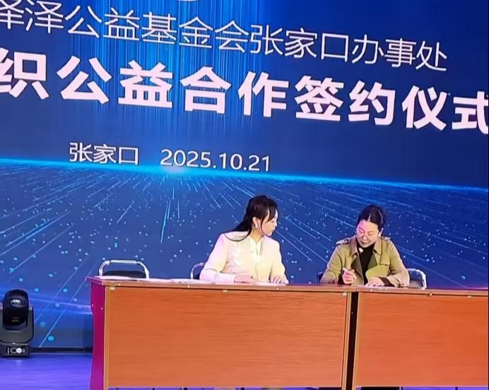 10月21日,内蒙古泽泽公益基金会张家口办事处成立仪式在市展览馆南厅举行。基金会总会理事长张占军与张家口办事处理事长王丽欣共同为办事处揭牌,快手网红“新农人飞飞”与内蒙古泽泽公益基金会(下称“泽泽公益基金”)正式签署战略合作协议。此次合作将新农人的产业实践优势与公益组织的资源整合能力深度绑定,构建“产业引领+公益赋能”的乡村振兴新模式,为当地农业高质量发展注入双重动力。