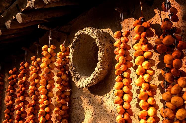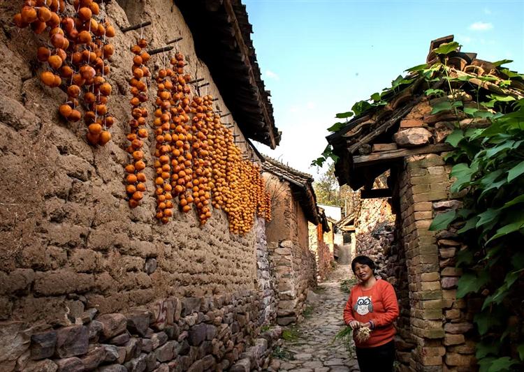 而村外一片片柿子林,挂满了红透的柿子,仿佛在诉说着这片土地上千年来发生的故事。“到月底,晒柿饼将成为这个小村最惊艳的一道风景。”老支书赵明福介绍道,“村里的牛心柿曾荣获世界农产品博览会金奖。”