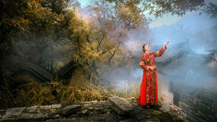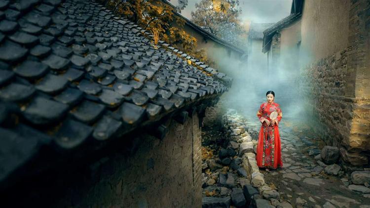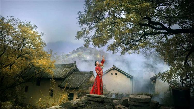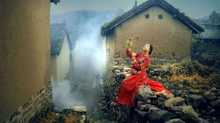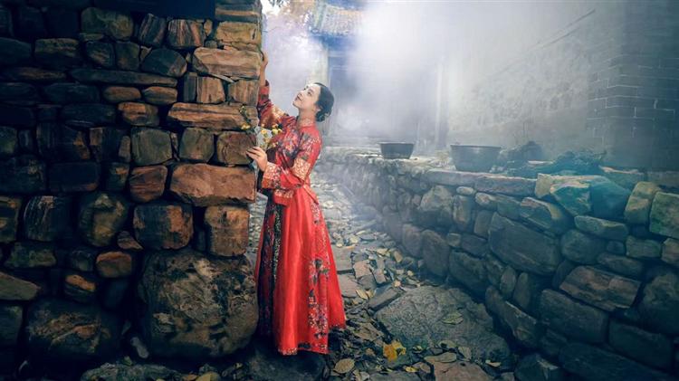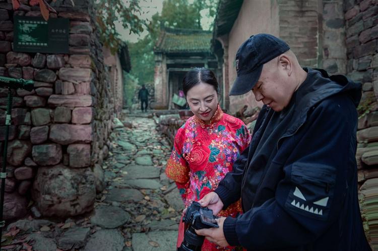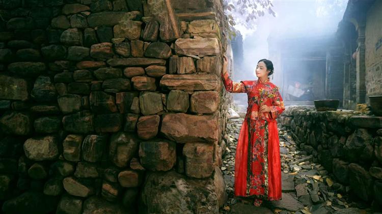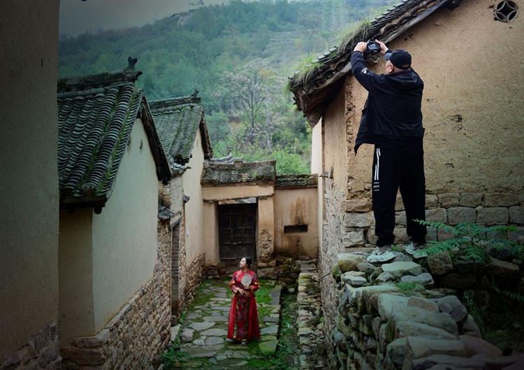 他的摄影团队在古村的各个角落取景:千年古槐树下,身着传统服饰的女子仿佛从历史中走来;石墙石碾旁,俊俏的村姑端着刚采摘的山楂,脸上洋溢着自然而生动的喜悦;古道小巷里,旗袍的演绎为古村注入了生机。