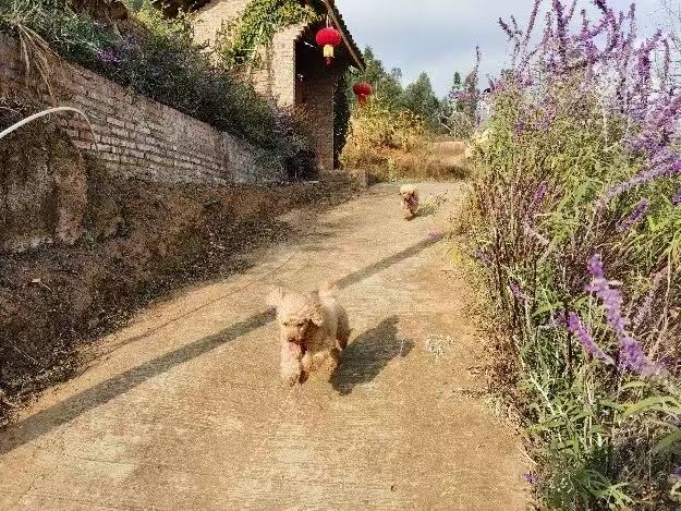 因为要带着家中的两只泰迪一同出行,我们挑选了一家名叫“花间映月”的民宿。两只泰迪中姐姐叫康妮Canny,是2014年刚满月时买来送给儿子的礼物。康妮虽然已经十岁多了(相当于人类65岁左右),胃口和体力都还不错,我们觉得她就像一个四十多岁的辣妈。弟弟叫朱尼尔Junior,是黄董事长的女儿在2018年春节后送给我们的,到家时才出生两个月,刚刚治好“细小”,瘦瘦弱弱的样子,叫得很哀切。康妮对家里新来的弟弟不太爱搭理,我们担心朱尼尔孤独和受寒,晚上就把他放在卧室床边随手可及的一个小笼子里。这只小可怜在洪姐照顾下健康成长,如今已是聪明伶俐的青壮年了。
