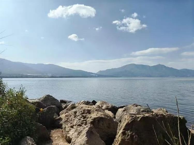 让人惊喜的是,从正月初一开始西昌的气候就转晴。期盼已久的阳光轻松地穿透清亮的太空,洒在邛海广袤的水面、照在民宿的花草树木和山腰的聚会平台上、也透过窗户平铺到房间里,没有夏日的炙热火辣,只有冬日的温暖和煦。